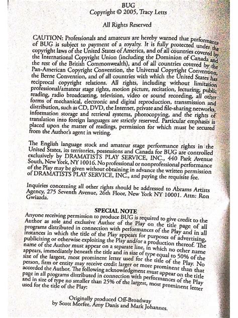 Download Bug By Tracy Letts Script PDF Doc Open Library